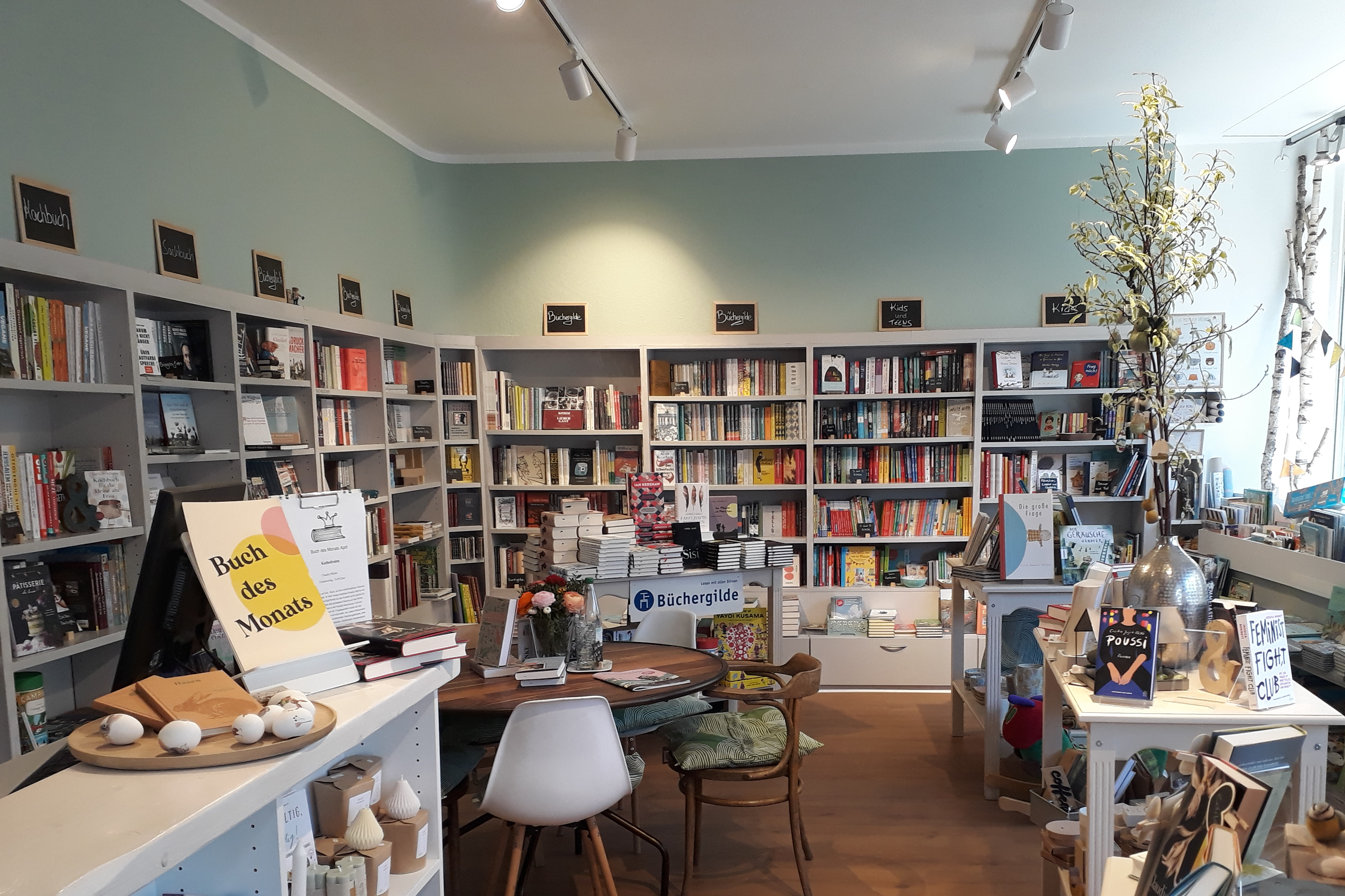 Wir haben eine sorgfältig und besonders liebevoll ausgesuchte Buchauswahl, die sich nicht an Bestsellerlisten o.Ä. orientiert sondern voll und ganz uns Buchhändlerinnen entspreicht. Bei uns finden Sie Romane, Sachbücher, Kochbücher und Kinderbücher sowie -exklusiv in Darmstadt- das Programm der Büchergilde Gutenberg. Außerdem haben wir immer eine feine Auswahl an Postkarten sowie an nachhaltig hergestellten Mitbringseln.